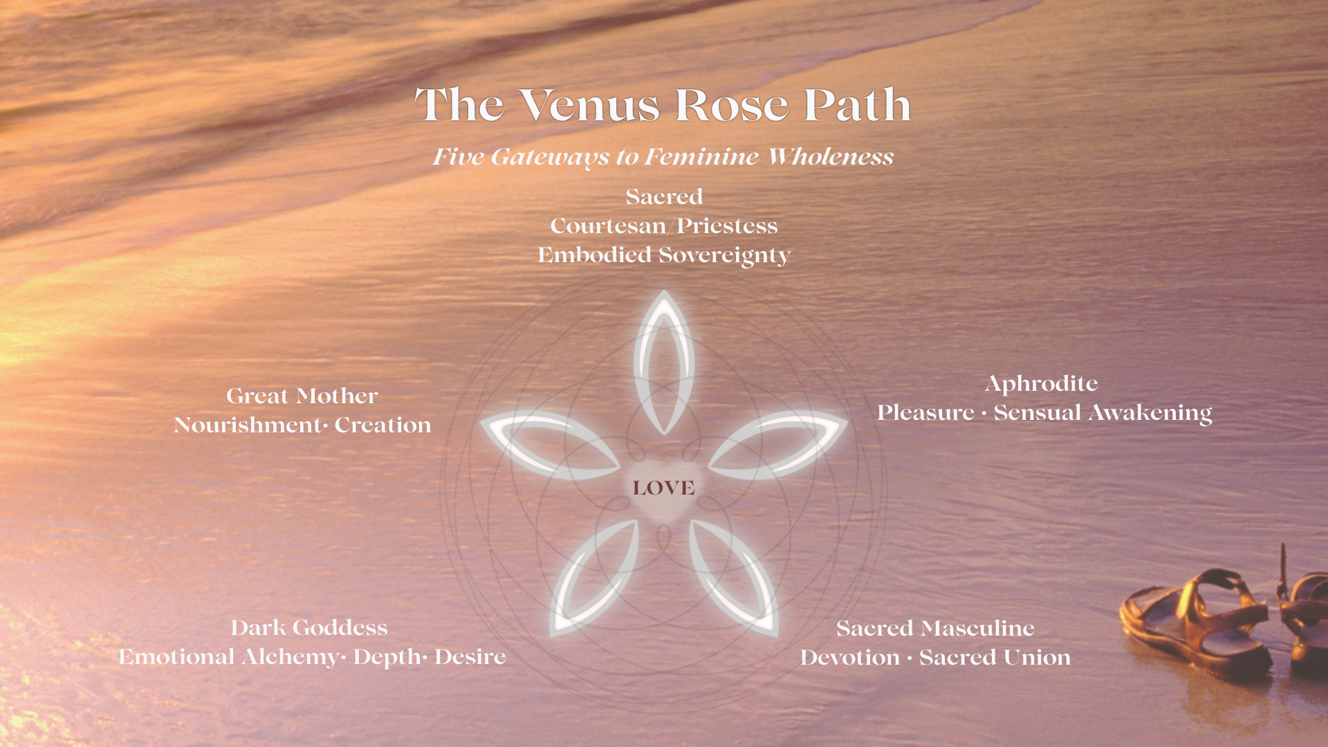 I’ve distilled this journey into what I now call The Venus Rose Path: a five-gateway journey of feminine awakening that unfolds not through striving… but through embodiment.